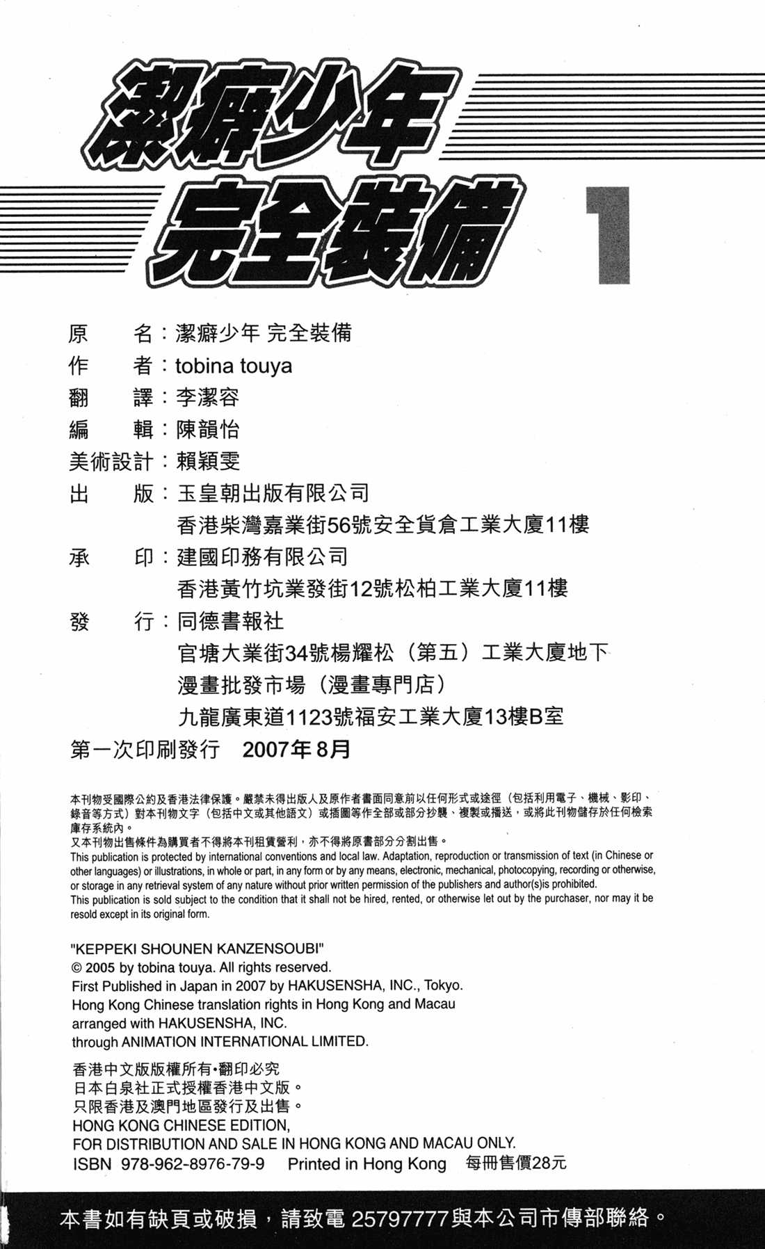 潔癖少年完全裝備 第1卷