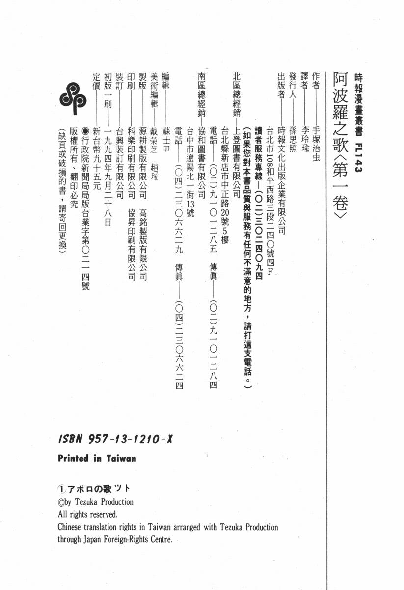 阿波羅之歌 第1卷